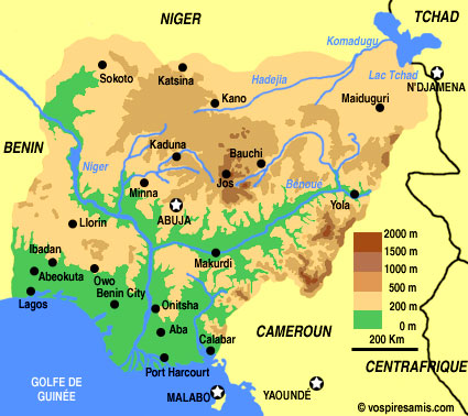 Pays Limitrophes : Bénin 773 Km, Cameroun 1.690 Km, Niger 1.497 Km, Tchad 87 Km.